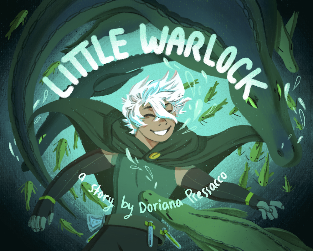 a 45-page children’s picture book following the adventure of a young warlock and his rabbit companion on a quest to aid their alligator friends, as they journey through the forest to find a solution to their local swamp’s suddenly polluted waters.
