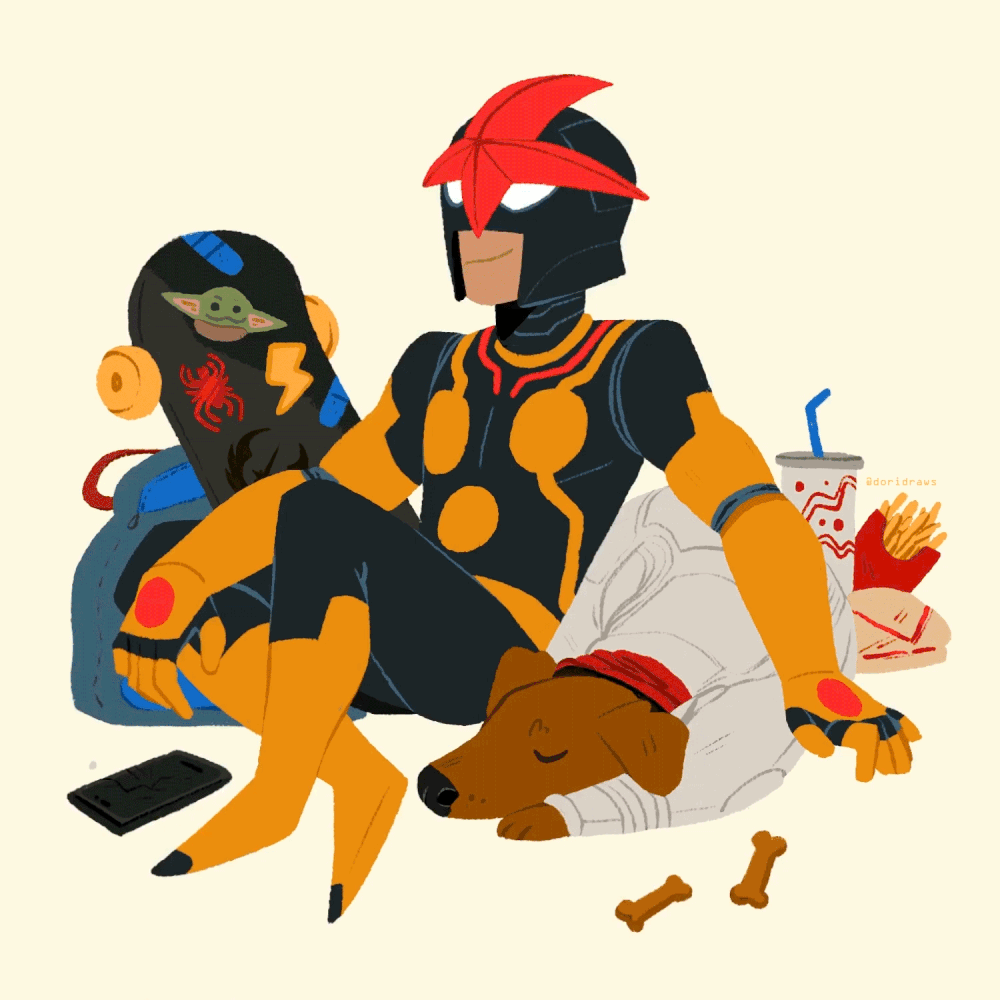 a looping animation made for marvel character, nova. part of a series of 3, with spider-man and ms. marvel.