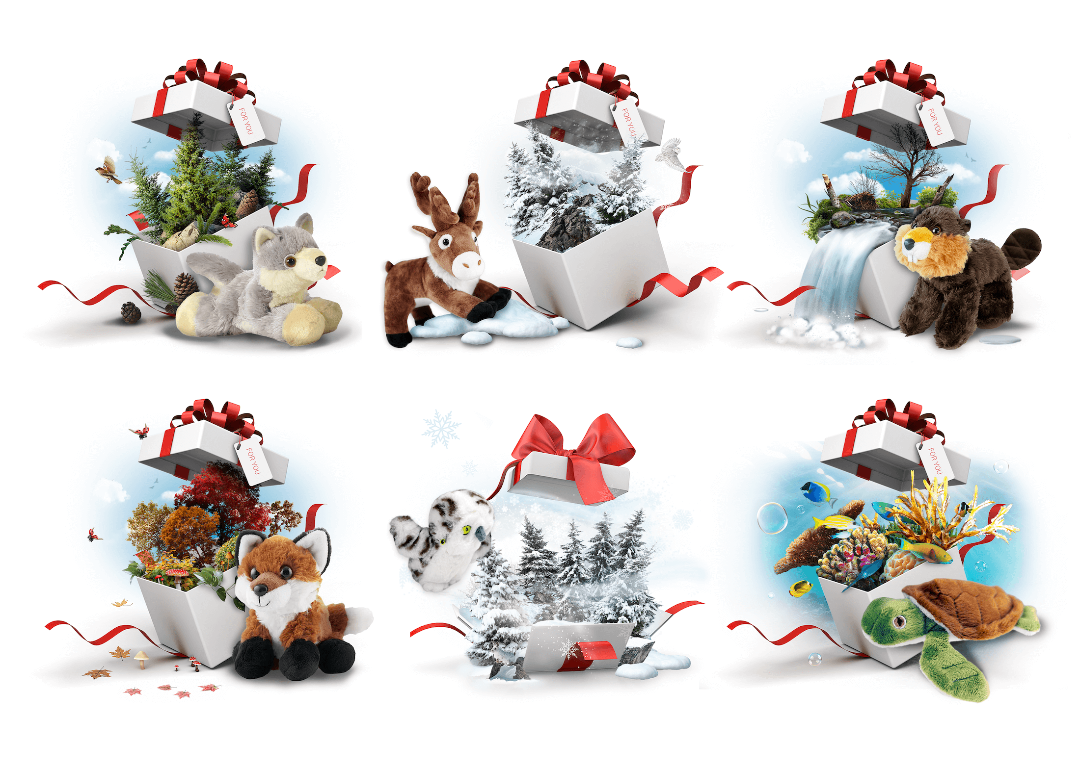 Lead designer on Earth Rangers’ second busiest sale period of the year. Worked with the creative director to create a visual language for this sales period that was unique but still warm and familiar, with classic holiday-time materials like red ribbons, satin, and white gift boxes.